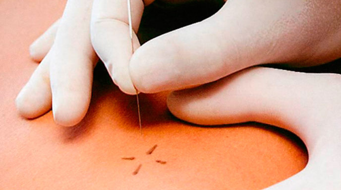 Con la punción seca conseguimos la interrupción mecánica que provoca la ruptura de los nódulos de contracción del punto gatillo, acabando así con la base de la crisis energética local y la sensibilización que ésta genera en los nervios cercanos.